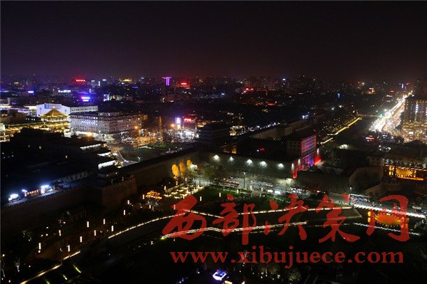 在鐘樓、鼓樓、大雁塔、長安塔等標(biāo)志性建筑物熄燈后,西安城墻不例外,城墻南門熄燈一小時(shí),周邊商場(chǎng)以及飯店也都相繼熄燈。