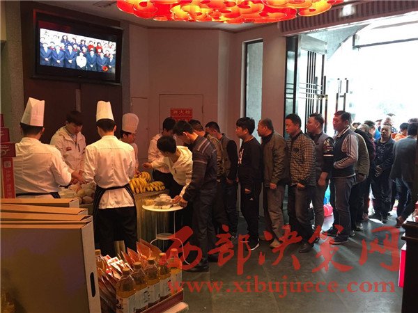 在現(xiàn)場記者看到,旺順閣魚頭泡餅門口工作人員指引的士司機們到指定車位,兩邊迎賓工作人員熱情接待每位到來的賓客。陸續(xù)到達(dá)的出租車已有近百輛,有序的一字排開,個個的哥臉上洋溢著燦爛的笑容,暢談寒暄,快樂的等待著。中午12時,旺順閣魚頭泡餅西安財富中心店總經(jīng)理呂貴朋女士宣布活動正式開始。