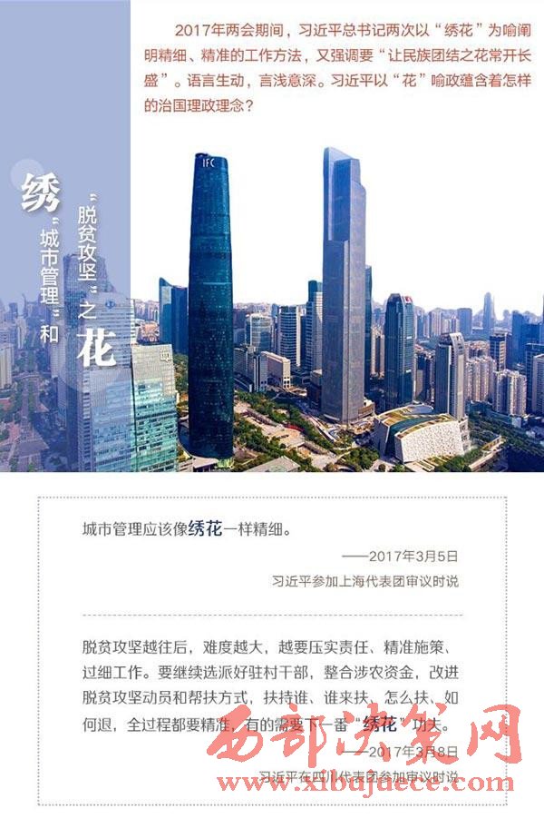 一繡城市管理:“城市管理應(yīng)該像繡花一樣精細(xì)。”3月5日,習(xí)近平參加上海代表團(tuán)審議,在談到超大城市管理時(shí),習(xí)近平如是說。
