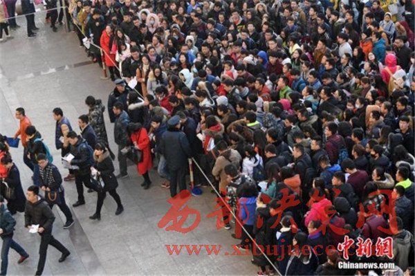 資料圖:2016年11月27日,山西太原一公務員考點,考生排隊準備進入考場。