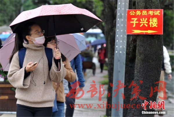 資料圖:2016年11月27日,11月27日,福州一公務員招考筆試考點,考生在尋找考場。