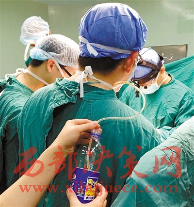 記者通過四川省人民醫(yī)院了解到,這張照片拍攝于3月17日,當時省人民醫(yī)院住院部手術室二手術室間正在進行一臺Bentall+全主動脈弓置換+降主象鼻支架置入+冠脈搭橋術。這次手術持續(xù)了12個小時,從上午9點過開始,一直持續(xù)到晚上9點過結束。照片拍攝于下午5點,當時巡回護士正在通過無菌引流管,給一直未進午餐的一助醫(yī)生喂可樂解渴。據(jù)了解,這樣的情況在心臟外科手術中很常見,也從一個側面說明了手術醫(yī)生不僅需要高精尖的專業(yè)技能、高強度的工作,還需要強壯的體魄!正是這些在封閉的手術間里全力以赴的醫(yī)護團隊,換來了一個個生命的奇跡。