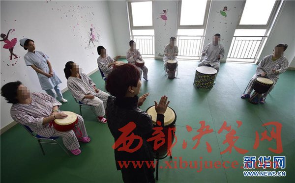 4月6日,抑郁癥患者在康復治療科的音樂治療室進行心理治療。