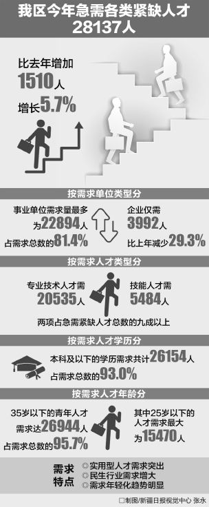“根據(jù)調(diào)查顯示,這幾年新疆急需緊缺人才需求數(shù)量連年增長,2017年比去年增加1510人,增長5.7%。”自治區(qū)人力資源和社會(huì)保障廳人力資源市場處處長趙倩說。