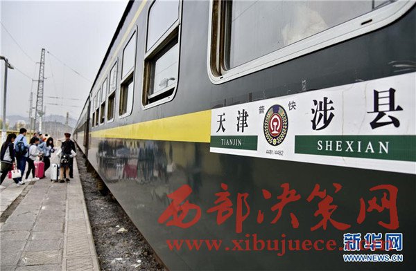 4月15日,旅客在涉縣火車站登上4482次列車。當(dāng)日,北京鐵路局河北涉縣至天津間的4482次“綠皮車”開始最后一次“旅行”。從4月16日起,全國(guó)鐵路實(shí)施新的列車運(yùn)行圖,此次列車將升級(jí)更換為快速空調(diào)列車,運(yùn)營(yíng)多年的該線路綠皮火車將告別鐵路舞臺(tái)。