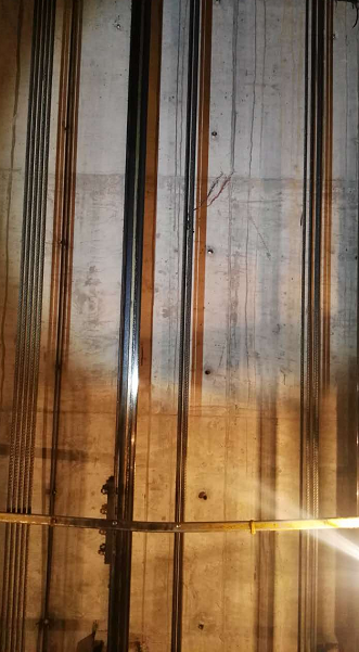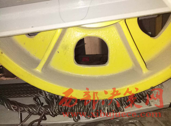 4月14日,西部大開發(fā)工作人員來到凱躍歐洲城,見到凱躍物業(yè)的尹經理,說明來意后,尹經理說,6號樓確實有五部電梯,其中有三部電梯在每月的電梯安檢時發(fā)現(xiàn)鋼絲繩有安全隱患,其中一部電梯鋼絲部分開叉,已經絞到滑輪下面,如果繼續(xù)使用,會有安全問題。所以物業(yè)公司3月份就找到寶雞市特種設備檢驗所(以下簡稱特檢所),要求現(xiàn)場檢查電梯到底是否能安全,能否繼續(xù)使用。