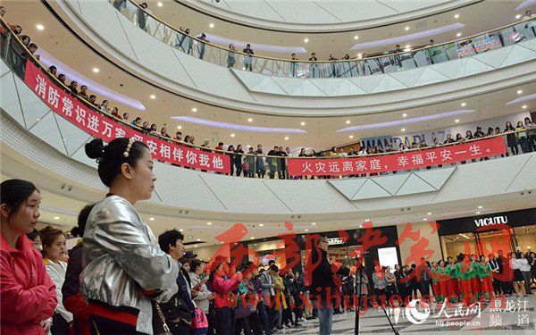 哈爾濱消防支隊南崗大隊表演“快閃舞”。