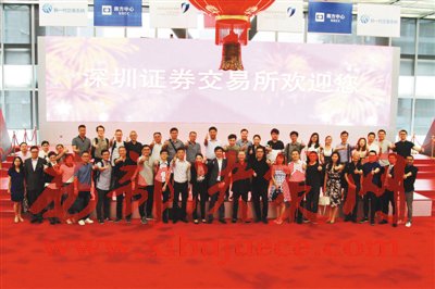 2016年5月9日,深交所在深圳召開阿里巴巴平臺(tái)商家上市座談會(huì),近50位天貓擬上市商家代表出席。圖為部分商家在深交所上市大廳合影。