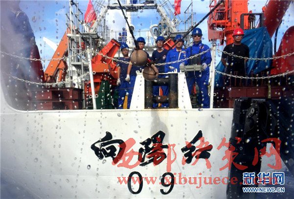 5月23日,“蛟龍”號完成下潛后回收到“向陽紅09”科學(xué)考察船上。