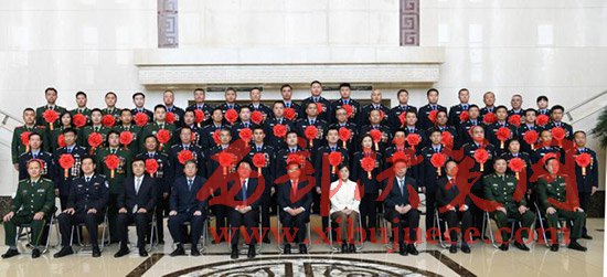 自治區(qū)領(lǐng)導(dǎo)李紀(jì)恒、布小林、任亞平、李佳、羅永綱、杜梓、馬明與全國公安系統(tǒng)英雄模范立功集體內(nèi)蒙古受獎單位代表和個人合影。
