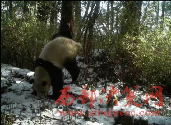臥龍國(guó)家級(jí)自然保護(hù)區(qū)木江坪保護(hù)站紅外攝像機(jī)拍攝到的大熊貓?jiān)跇?shù)上做標(biāo)記求偶