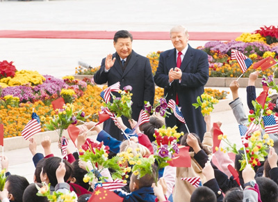 11月9日,國(guó)家主席習(xí)近平在北京人民大會(huì)堂東門外廣場(chǎng)舉行歡迎儀式,歡迎美利堅(jiān)合眾國(guó)總統(tǒng)唐納德·特朗普對(duì)中國(guó)進(jìn)行國(guó)事訪問。(記者 李學(xué)仁 攝)
