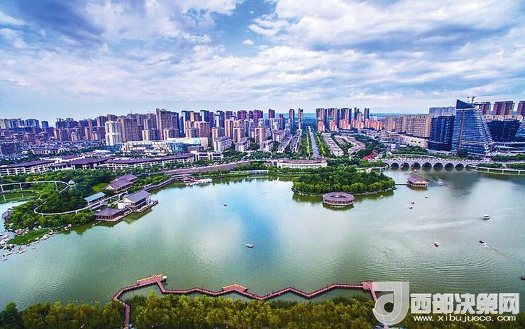 碧波蕩漾的西安浐灞生態(tài)區(qū)。 記者 袁景智攝