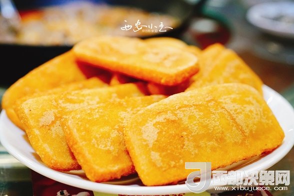 再來(lái)一份糜子糕,告訴成都的小伙伴,《舌尖上的中國(guó)》里介紹過的黃饃饃,跟這個(gè)一樣,都是用糜子做的。外焦里糯,香甜美味。