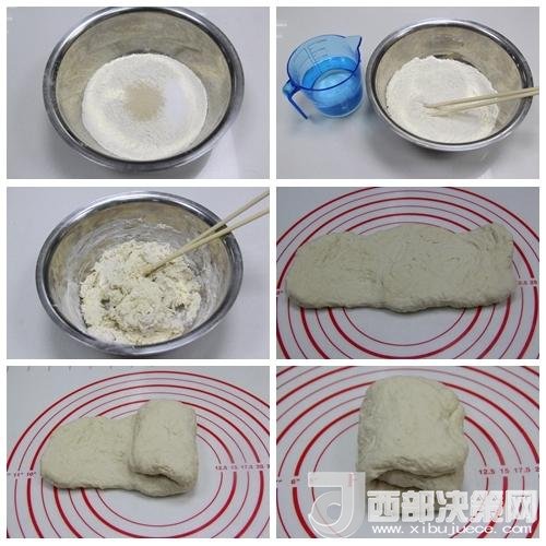 5、 用折疊被子的方法折疊面團(tuán)