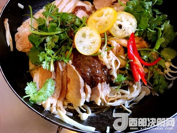 將所有食材放入盆里,加醬汁抓拌。