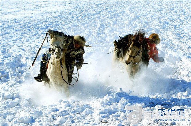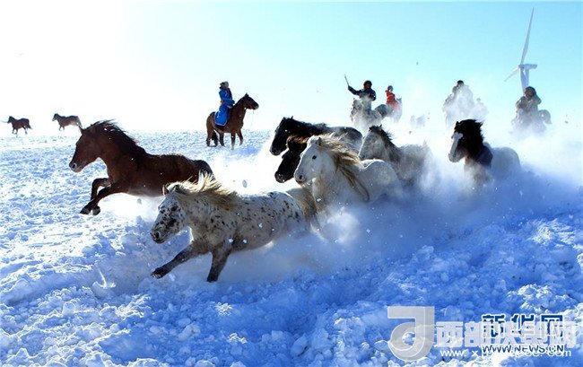 眼下,內(nèi)蒙古正值冬季旅游旺季,牧民們?cè)诎籽└采w的草原上馴馬,迎接八方游客的到來(lái)。