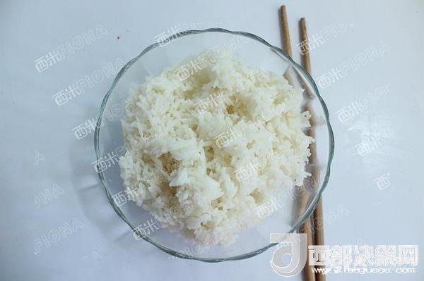 米飯熟了后,立刻打散晾涼,最好是隔夜的,因?yàn)榻?jīng)過了一個(gè)晚上,米飯里面的水份已被蒸發(fā)的差不多,這個(gè)時(shí)候炒米飯,就不會結(jié)成團(tuán)。而是粒粒分明。如果是用的厚厚的鐵板旺火快炒,就能發(fā)現(xiàn)飯粒在鐵板上跳動。