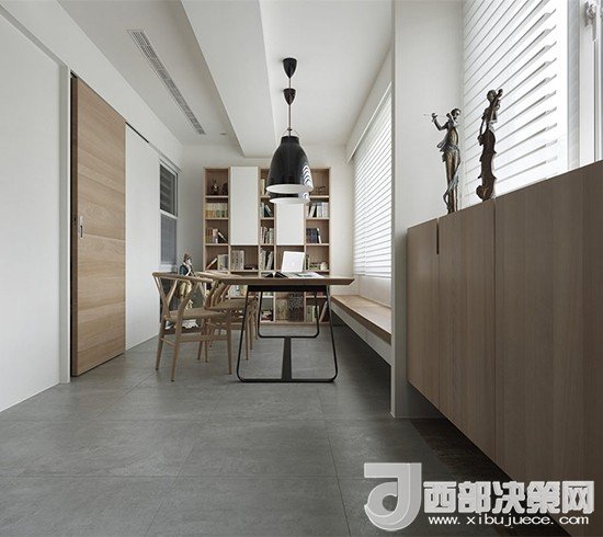 站在長廊一頭視線忍不住會(huì)跟著木質(zhì)頂板向前眺望,一直延伸至窗外,室外的采光經(jīng)過漫反射幾乎可以引入整個(gè)客廳。