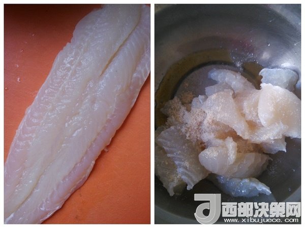 原料:龍利魚、橙子、火腿、雞蛋、料酒、食鹽、雞粉、胡椒。