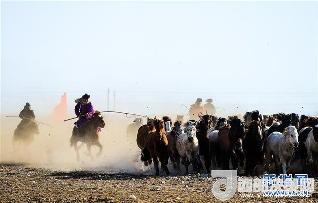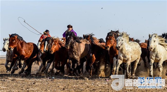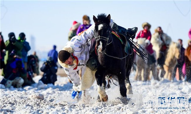 1月16日,在內(nèi)蒙古錫林浩特鳳凰馬場,當?shù)啬撩駛冑愸橊劇?br />
