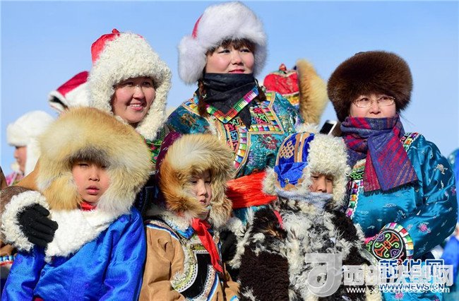 1月16日,在內(nèi)蒙古錫林浩特鳳凰馬場,當?shù)啬撩裨谀沁_慕上合影。