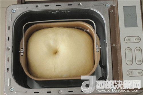 4.程序結(jié)束,面團(tuán)發(fā)酵好了,用手在中間撮個(gè)洞,不回縮不塌陷,剛剛好