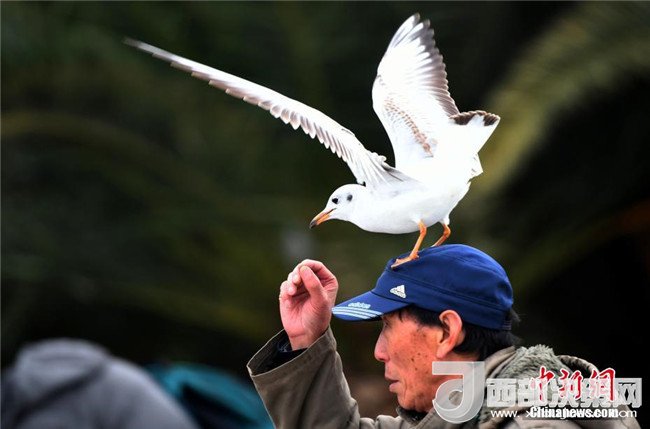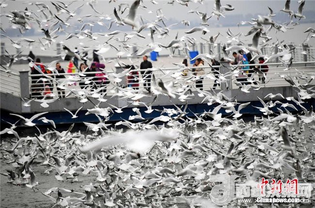 “春城”昆明強降溫紅嘴鷗與游人互動