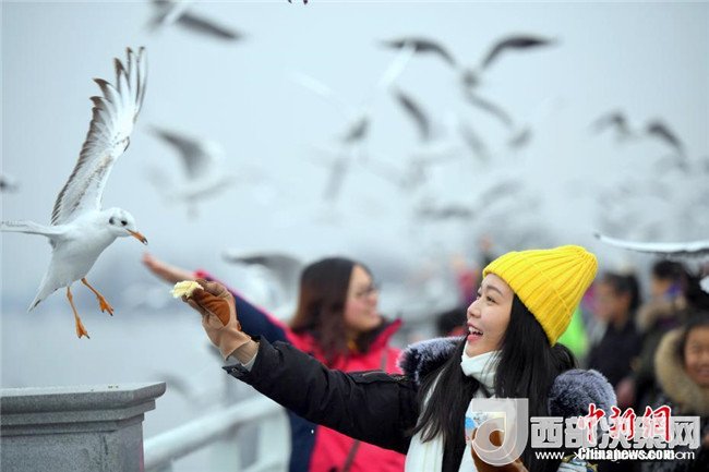 2月4日,一名女孩穿著厚厚的冬裝在昆明滇池邊給紅嘴鷗喂食。當日,受較強冷空氣影響,“春城”昆明最低氣溫下降至-3℃。天氣雖然寒冷,卻抵擋不住市民和游客前來滇池觀賞、喂食越冬紅嘴鷗的熱情。中新社記者李進紅攝