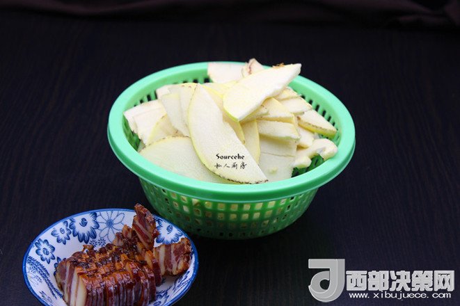 4.熱鍋,倒油,小火煎臘肉至熟,起鍋;