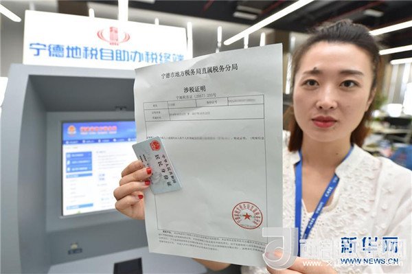 福建寧德時(shí)代新能源科技有限公司一名新入職的員工展示從自助辦稅終端打印的涉稅證明(2017年10月12日攝)。新華社記者宋為偉攝