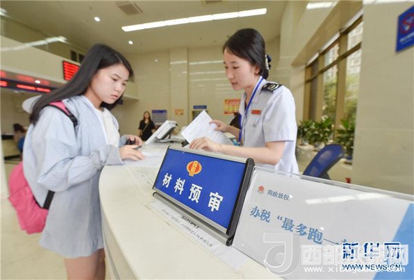 在福建福州地稅綜合辦稅中心辦稅服務(wù)廳,工作人員對(duì)納稅人材料進(jìn)行預(yù)審,以節(jié)約其等候時(shí)間(2017年7月18日攝)。 新華社記者宋為偉攝