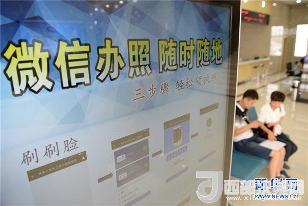 這是陜西楊凌示范區(qū)綜合服務(wù)大廳電子屏上展示的“微信辦照”流程(2017年7月17日攝)。 新華社記者邵瑞攝