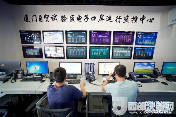 廈門自貿(mào)試驗(yàn)區(qū)電子口岸運(yùn)行監(jiān)控中心工作人員在接聽電話,該中心是面向中國(福建)自貿(mào)試驗(yàn)區(qū)廈門片區(qū)及廈門口岸的大通關(guān)一體化信息平臺(tái)(2017年5月23日攝)。新華社記者姜克紅攝