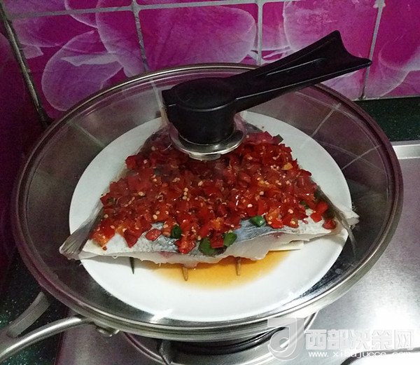 3、蒸魚跟平時蒸包子饅頭一樣,得上汽后放入這樣可使魚快速成熟,吃起來也更鮮嫩