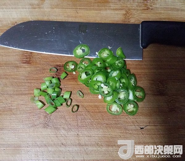 10.趁蒸魚的時候、將杭椒和蔥葉洗凈切好