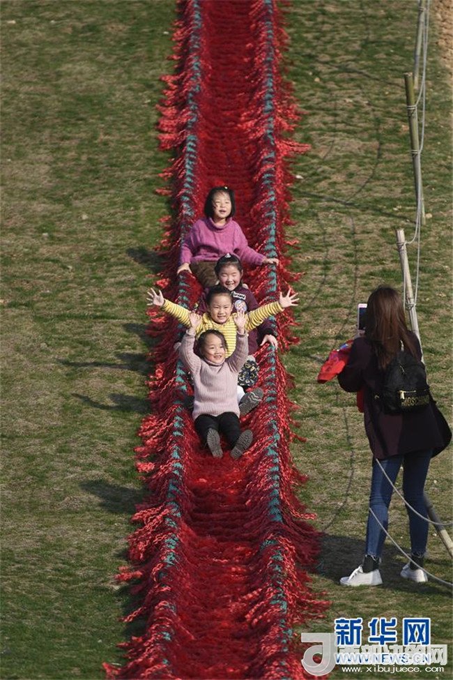 小朋友在湖州市吳興區(qū)妙西鎮(zhèn)原鄉(xiāng)小鎮(zhèn)體驗(yàn)滑草(3月10日攝)。