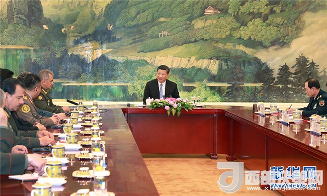 4月23日,國(guó)家主席習(xí)近平在北京人民大會(huì)堂集體會(huì)見上海合作組織成員國(guó)國(guó)防部長(zhǎng)。 新華社記者 李剛 攝