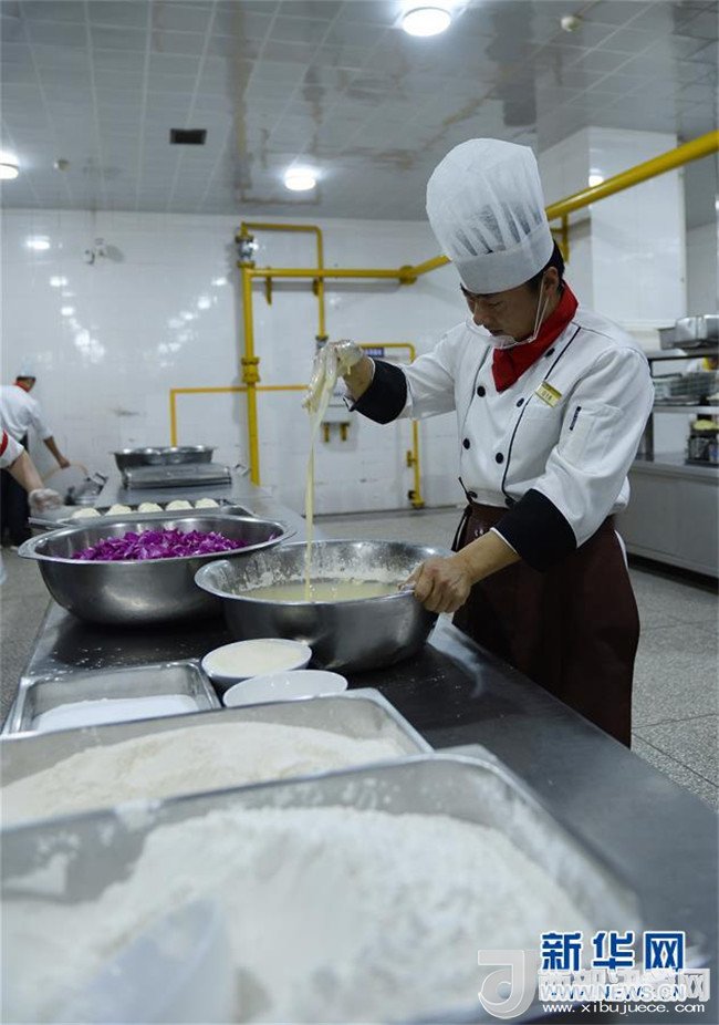 4月25日,廚師們?cè)谠颇洗髮W(xué)呈貢校區(qū)食堂制作玫瑰包。