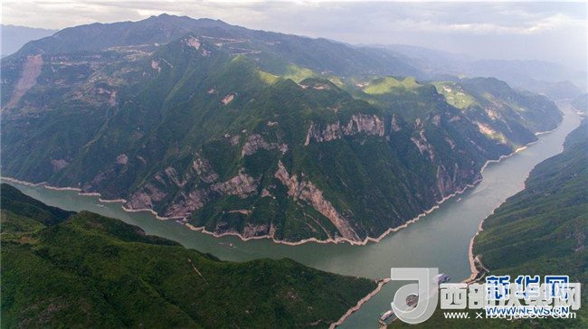 2017年5月10日無人機(jī)航拍的巫峽的長江大拐彎景色。