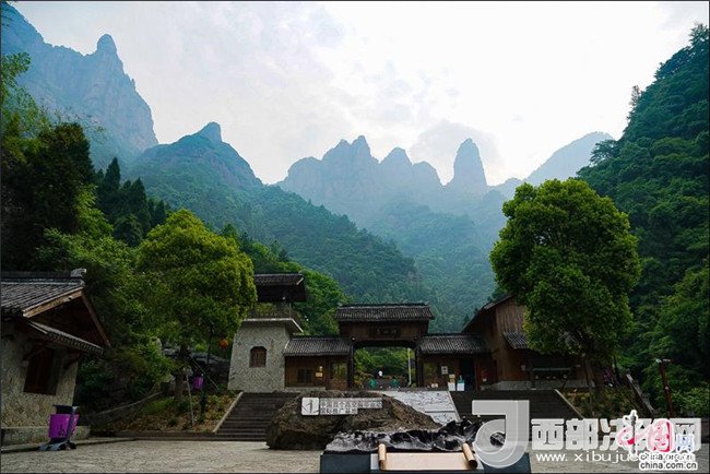 景區(qū)南北兩側(cè),為江南峽谷風(fēng)光,林泉相依,以巖奇、瀑雄、谷幽、洞密、水清、霧美取勝,千峰林立,氣象恢弘。自北海索道上至南海索道下,數(shù)公里的旅程均在數(shù)百米的高空棧道上行進(jìn)。其間依次行走在菩提道、般若道、因緣道、觀音道、飛鷹道與無為道這六條道上。