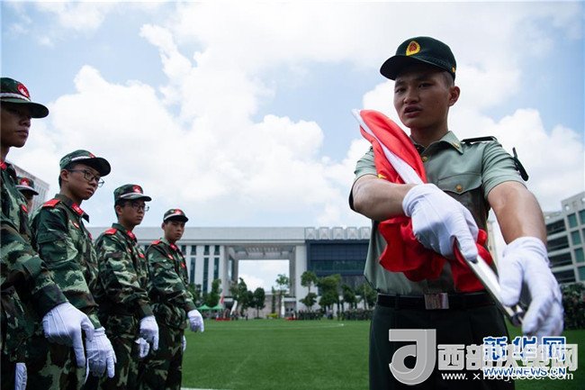 當日,“國旗下的說話·2018年澳門中學生國旗手訓練營”舉行。來自30所澳門中學的300余名中學生會聚解放軍駐澳門部隊氹仔軍營,在迷彩的青春方陣中親手升起鮮艷的五星紅旗。新華社記者張金加攝