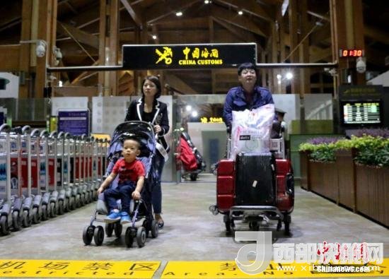 海南今年5月1日起實(shí)施59國人員入境旅游免簽政策,圖為當(dāng)日首批免簽游客抵三亞。王曉斌 攝