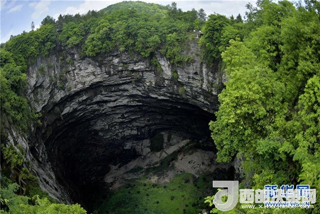 這是5月17日在湖北省宣恩縣鑼圈巖村拍攝的“天坑”。