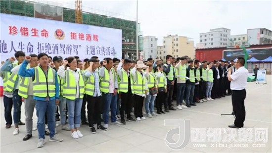西部決策網(wǎng)——西部大開發(fā)訊(帥華鋒 通訊員 馬存福 蘇娟)認真貫徹落實全省春運總結(jié)暨春夏反超速反疲勞反酒駕綜合治理視頻會議精神,縱深推進全縣“三反一查”及酒駕宣傳教育活動。5月29日,甘肅西和縣公安局交警大隊在城區(qū)避難廣場隆重舉行“關(guān)愛他人生命 拒絕酒駕毒駕”主題宣傳活動,進一步弘揚交通安全法治精神,普及交通安全風(fēng)險防范知識,倡導(dǎo)通行規(guī)則、守法自律、社會責(zé)任、文明交通和公眾道德意識,倡導(dǎo)全民抵制酒駕醉駕違法犯罪行為,形成人人抵制交通違法、人人踐行文明交通、全社會共建共享文明交通的良好風(fēng)尚。西和縣縣委常委、政法委書記嚴倉一出席活動并講話,交警、運管、亨通、萬通、隴運西和分公司的負責(zé)人及駕駛?cè)舜?,福安、祥豐駕校學(xué)員代表共計200余人參加了活動。