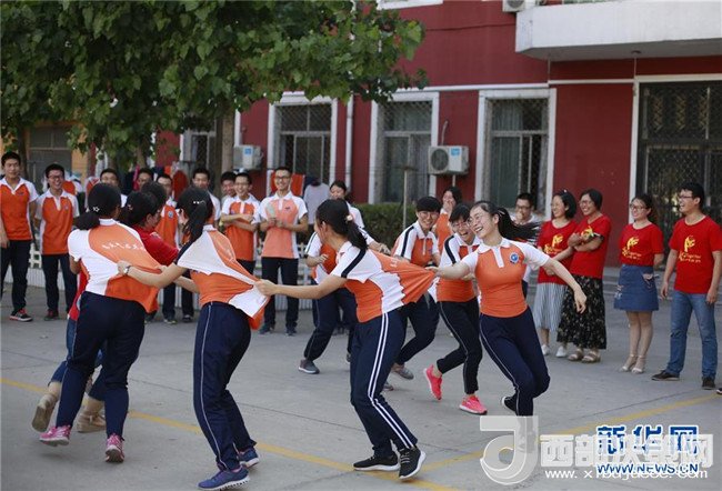 6月5日,河北省衡水市第十四中學高三學生參加趣味減壓游戲。