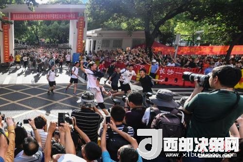 資料圖:6月8日下午,湖南長(zhǎng)沙市一中考點(diǎn)外,考生跑出考場(chǎng),慶祝高考結(jié)束。 中新社記者 楊華峰 攝