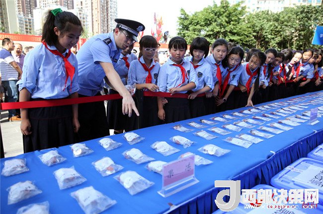 學(xué)生參觀展示的各類毒品,并學(xué)習(xí)如何識(shí)別毒品,了解毒品危害。劉政寧 攝