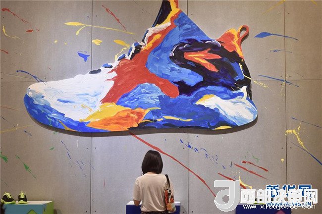 在一年一度的中國(guó)(晉江)國(guó)際鞋業(yè)暨國(guó)際體育產(chǎn)業(yè)博覽會(huì)上,一位客商在了解安踏運(yùn)動(dòng)鞋(2017年4月18日攝)。新華社記者 宋為偉 攝