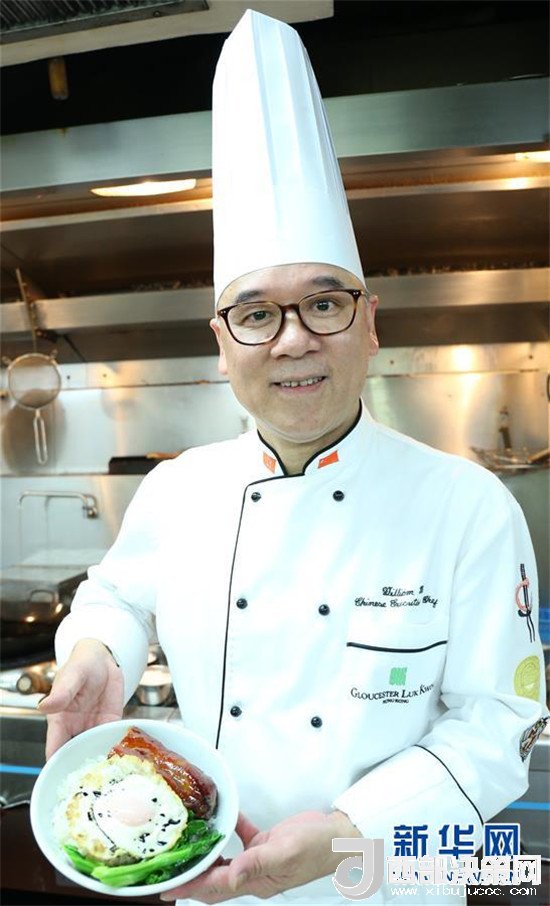 在香港六國酒店,香港中廚師協(xié)會會長馬榮德向記者展示他剛剛制作的“黯然銷魂飯”(6月14日攝)。新華社記者 萬后德 攝